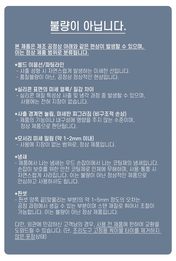 · 상품 불량의 경우 증빙되는 사진 또는 영상이 함께 있어야 빠른 처리가 가능합니다.