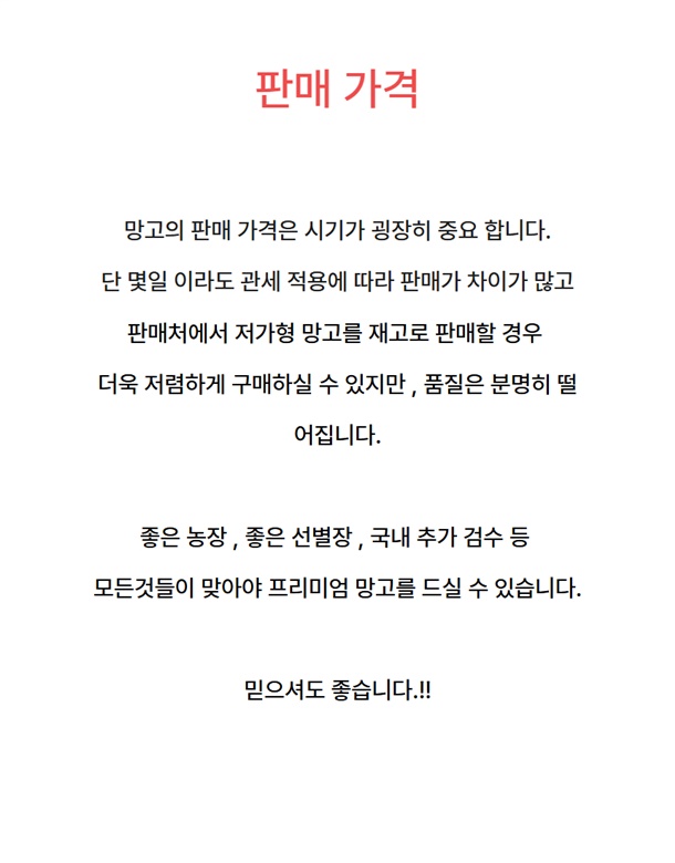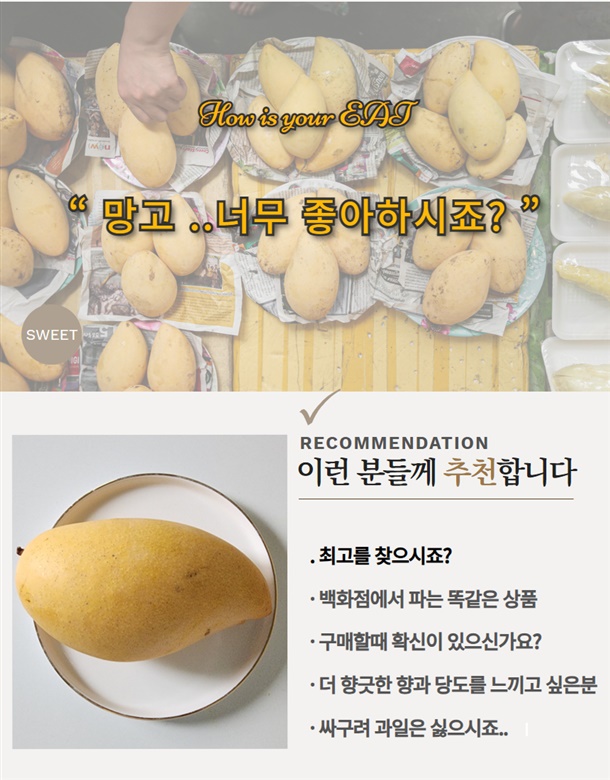 일반적으로 유통되는 망고와 품질 차이가 큽니다.