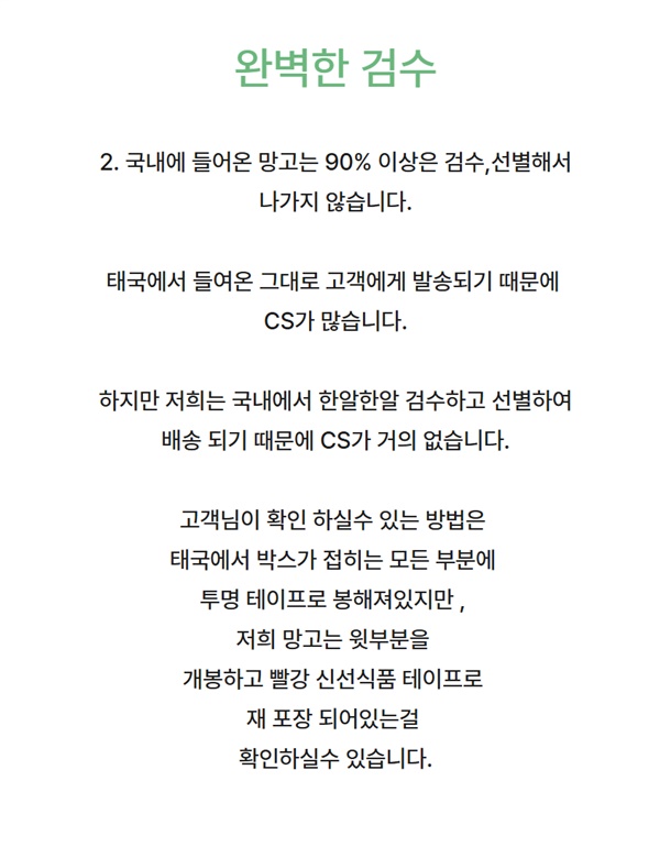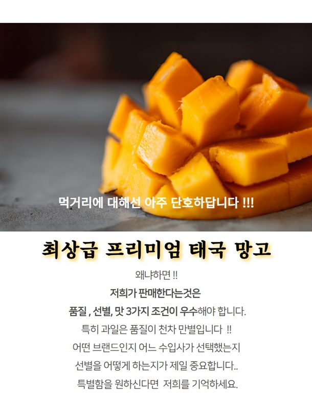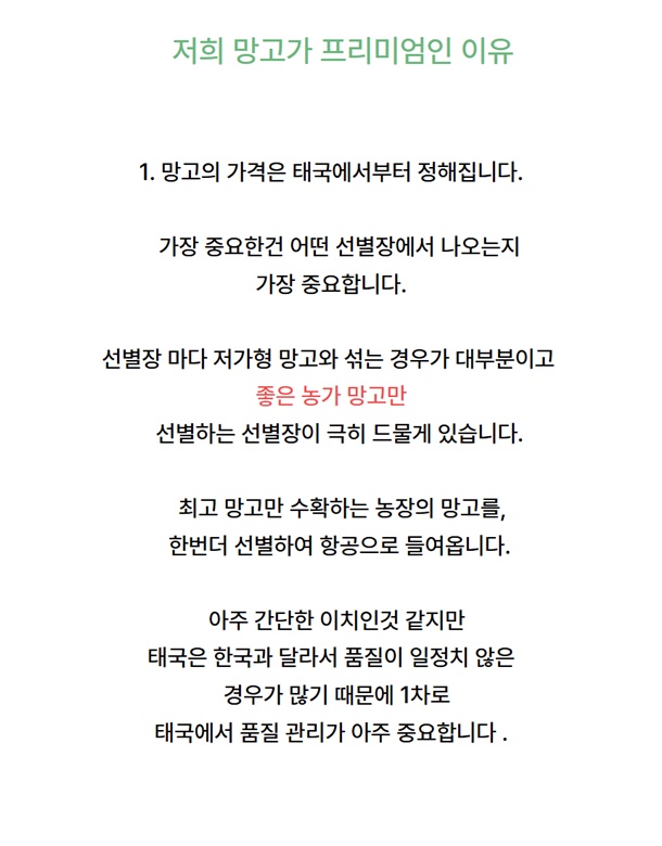 저희 망고는 한국업체에서 태국 산지에 직접 선과장을 운영하여 철저한 품질 관리로